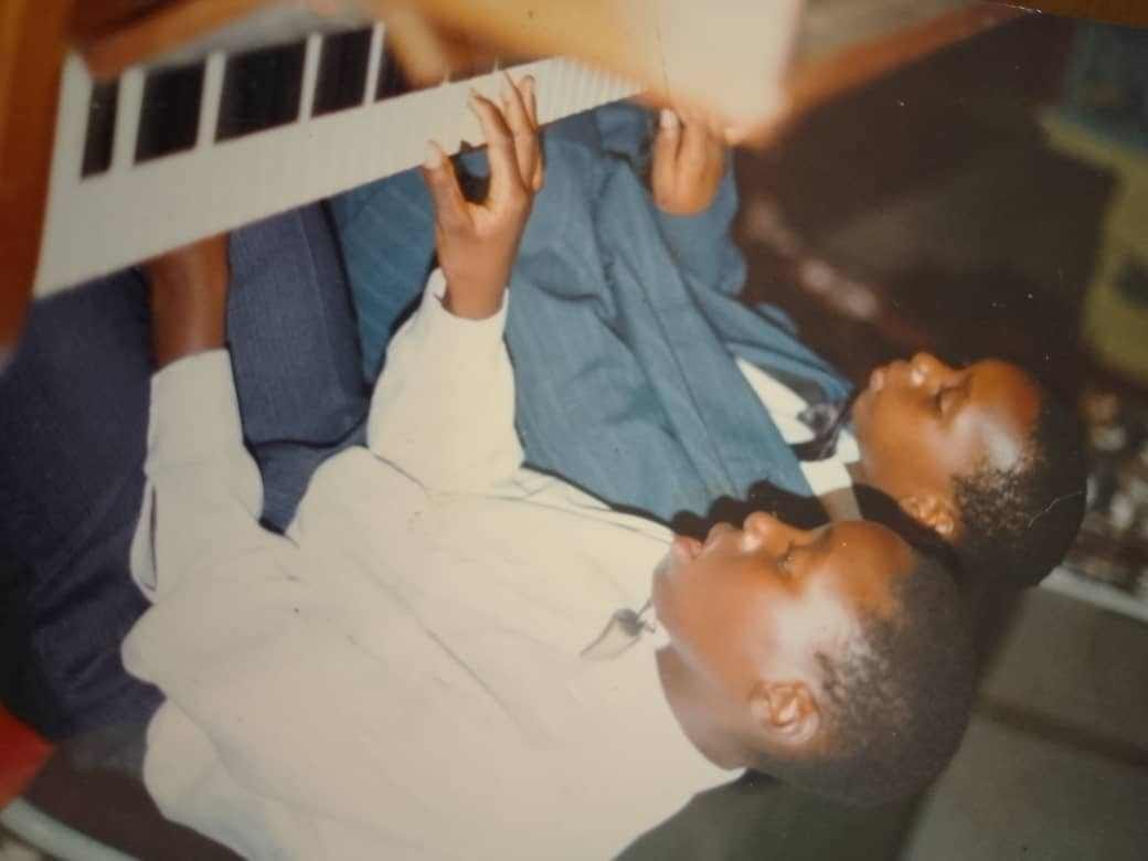 I quickly became notorious for learning songs and then showing my classmates how I could play them in different keys. Here's a photo of me and my friend at the piano together when we were about ten years old.